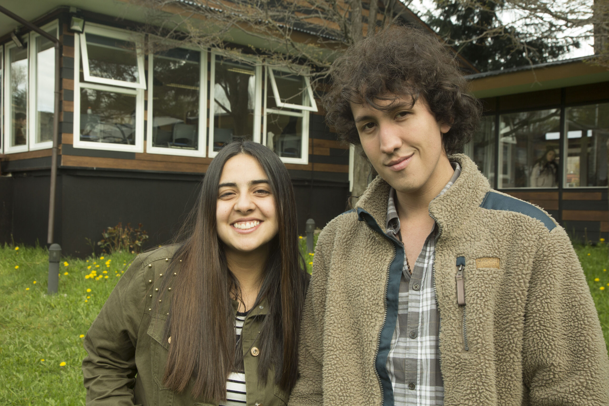 Loreto Mitre, estudiante de primer año de enfermería junto a Camilo León, estudiante de segundo año de Agronomía en el Campus Río Simpson