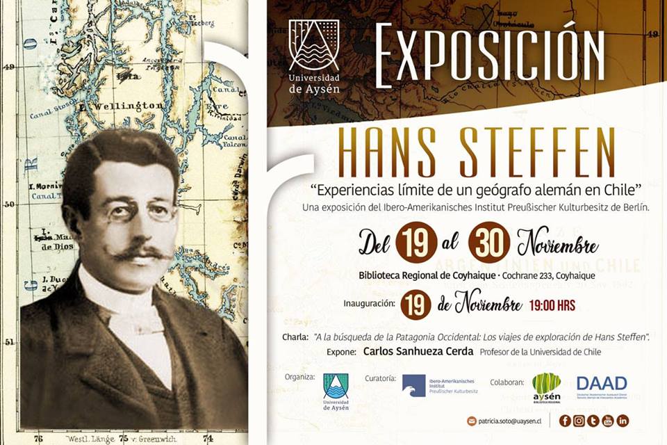 Con la finalidad de relevar el patrimonio cultural de la región de Aysén y abrirlo a toda la comunidad, la Universidad de Aysén inaugurará hoy lunes a las 19:00 horas en el salón auditorio de la Biblioteca Regional en Coyhaique la exposición “Hans Steffen, experiencias límite de un geógrafo alemán en Chile”.