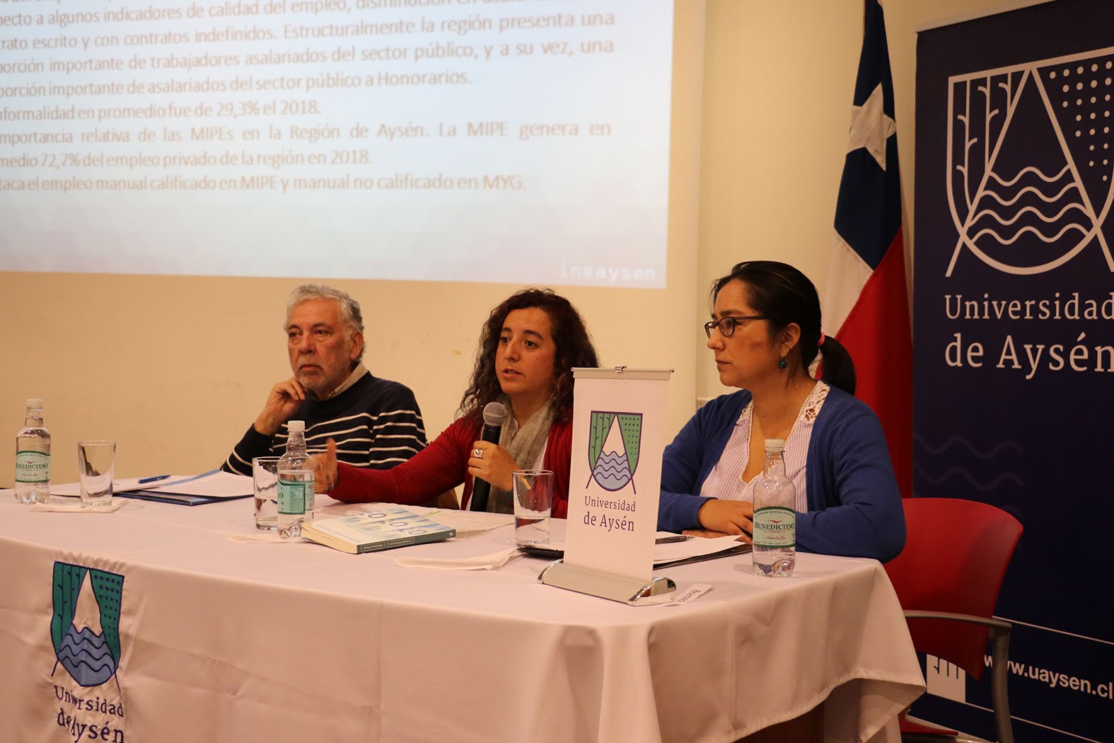 Jefa de Carrera de Ingeniería Civil Industrial, Natacha Pino se refirió a la cobertura del mercado laboral en Aysén la que estaría relacionada con las altas tasas de trabajadores por cuenta propia asociados a procesos de emprendimiento, sin embargo señaló que este sector es uno de los más vulnerables, por lo que se hace necesario impulsar políticas que les permitan especializarse, crecer y convertirse en potenciales empleadores.