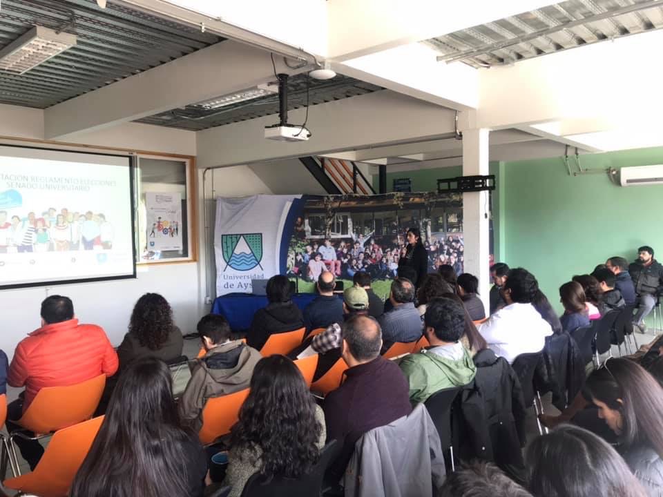 Con la presentación del reglamento general de elecciones del senado universitario, la casa de estudios regional iniciará un proceso que permitirá instalar uno de los órganos de gobierno que incorpora la participación de la comunidad universitaria de manera triestamental en la construcción de la universidad. Con la participación de estudiantes, funcionarios  y funcionarias, académicos y académicas, la Universidad de Aysén presentó el pasado lunes 4 de noviembre el reglamento que permitirá a la comunidad de la universidad estatal conformar su primer Senado Universitario. La elección, que se realizará el próximo 29 de noviembre, tiene por objetivo conformar uno de los órganos de gobierno universitario, sumándose a los que ya se encuentran actualmente en ejercicio como son el consejo superior, la rectoría y la contraloría Universitaria. Esta instancia es conformada por estudiantes, académicos y académicas y el personal de colaboración, quienes son escogidos a través de una votación abierta y democrática, permitiendo de esta manera, su conformación antes de febrero de 2020, plazo límite establecido en los estatutos de la casa de estudios para conformar dicho órgano. El la ocasión, la rectora de la UAysén, Natacha Pino Acuña destacó la realización de este proceso como un espacio de conexión con la actual situación que atraviesa el país, pues el senado se constituye en una instancia democrática y que promueve la participación de toda la comunidad universitaria. “Vendrá un mes intenso para quienes quieran ser senadores y senadoras, ya que no basta solo con tener un reglamento, para darle vida y que pueda funcionar, que lo podamos ejecutar y podamos tener nuestro senado electo, dependerá de cómo la comunidad asuma esta responsabilidad” señaló la autoridad universitaria. En la ocasión además la rectora Pino leyó una carta que le hiciera llegar el vicepresidente del Senado de la Universidad de Chile, Luis Felipe Hinojosa, quien a nombre de la mesa del senado de la Casa de Bello envió un afectuoso saludo a la comunidad de la Universidad de Aysén por el inicio del proceso de eleccionario.  (Revisa la carta aquí). La presentación del reglamento estuvo a cargo de la Secretaria General de la casa de estudios Pía Grandon, quien dió a conocer las principales funciones del órgano de gobierno, así como también, quiénes lo conforman y cómo se desarrollará el proceso eleccionario del próximo 29 de noviembre. Al finalizar la ceremonia el académico del Departamento de Ciencia Sociales y Humanidades señaló que espera que el proceso eleccionario convoque a la comunidad universitaria. “Este es un paso fundamental en la constitución del gobierno universitario ya que entrega la visión triestametal sobre todo en temas académicos, por lo tanto, es muy importante la participación de los tres estamentos, pero especialmente de los académicos que son los que integran en su mayoría el senado universitario, estamos muy esperanzados que pueda ser un proceso eleccionario participativo y que convoque a la mayor cantidad de votantes” señaló el sociólogo de la carrera de Trabajo Social. Por su parte, la estudiante de tercer año de la carrera de trabajo social, Evelyn Pérez valoró la posibilidad de este espacio que permitirá a los estudiantes participar de las decisiones de la casa de estudios. “Es un espacio que estábamos esperando, como estudiantes creemos que esta es una instancia más que relevante para que los estudiantes puedan estar informados respecto de lo que está pasando en la universidad como la creación de nuevas carreras o reglamentos que se quieran aprobar, es un espacio que empareja la cancha donde el estudiante tiene poder de decidir”, indicó la estudiante de trabajo social. En tanto, para el presidente de la asociación de funcionarios de la Universidad de Aysén (AFUA) Miguel Pérez, la presentación del reglamento marca un antes y un después en la historia de la casa de estudios. “La instalación del senado universitario es algo en lo que como asociación de funcionarios hemos venido luchando desde su constitución, porque vemos que la relevancia está en que incluye la participación de los tres estamentos en la toma de decisiones generales de la universidad, creemos que la importancia de este hito es marca un antes y un después, donde nos permite tener certeza que el senado universitario se va a constituir como tal”, indicó el dirigente. Revisa el video de la actividad en el siguiente enlace: Video Jornada Presentación Reglamento Senado