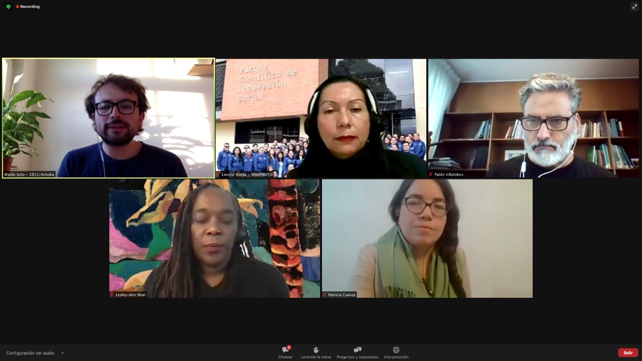 El webinar internacional tuvo como propósito conocer las experiencias y recoger aprendizajes de cuatro referentes académicos en el ámbito de la Innovación Social, a nivel internacional y nacional, quienes desarrollan acciones a través de la implementación y articulación de diferentes espacios creativos de trabajo.