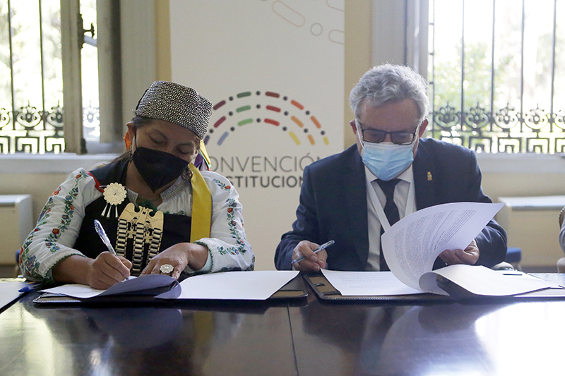 La firma del Convenio se llevó a cabo en las dependencias del ex Congreso Nacional, y contó con la presencia de la presidenta y vicepresidente de la Convención, además del presidente del Cuech Ennio Vivaldi. El además rector de la U. de Chile recalcó que “La Convención Constitucional es una instancia auténticamente representativa del pueblo de Chile y para nosotros es un privilegio ponerlos a las órdenes de esta convención para aquello que ellos estimen conveniente o puedan necesitar de mano de las Universidades Públicas”.