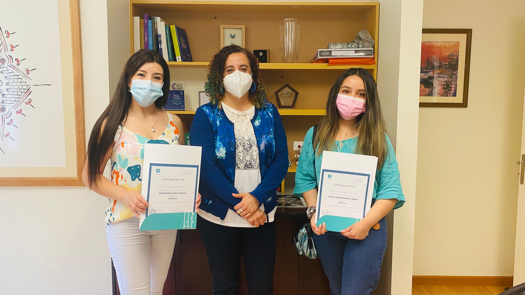 Las estudiantes Catalina Alvares Aguilar e Ingrid Pérez Pacheco son las primeras estudiantes de la carrera de Enfermería de la UAysén en completar exitosamente su proceso formativo, sus internados profesionales y su examen de título, convirtiéndose en las primeras profesionales en terminar su carrera en la casa de estudios, lo que constituye un hito muy importante para la universidad.