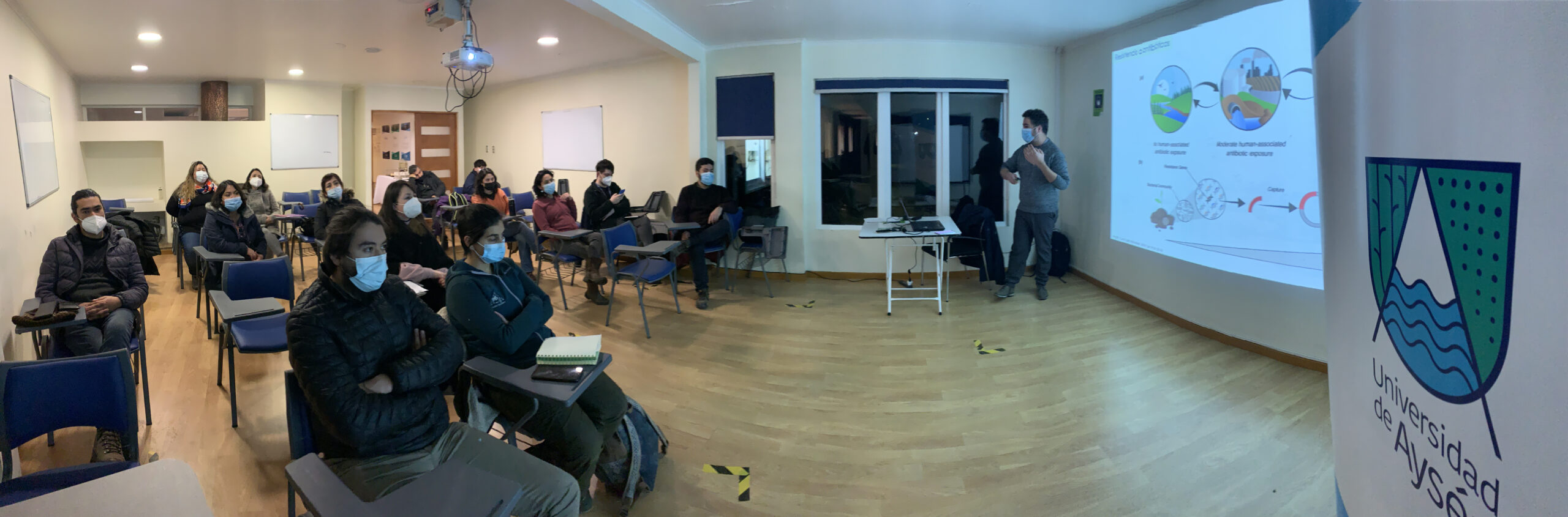 El Dr. en Ciencias Biomédicas Andrés Opazo Capurro, del Laboratorio de Investigación en Agentes Antibacterianos de la Universidad de Concepción, se presentó en la Universidad de Aysén para dictar la charla “Resistencia a los antibióticos: una amenaza global". El especialista explicó la problemática asociada a la resistencia desarrollada por diferentes bacterias a este tipo de fármacos, cuyas infecciones son cada vez más difíciles de tratar.