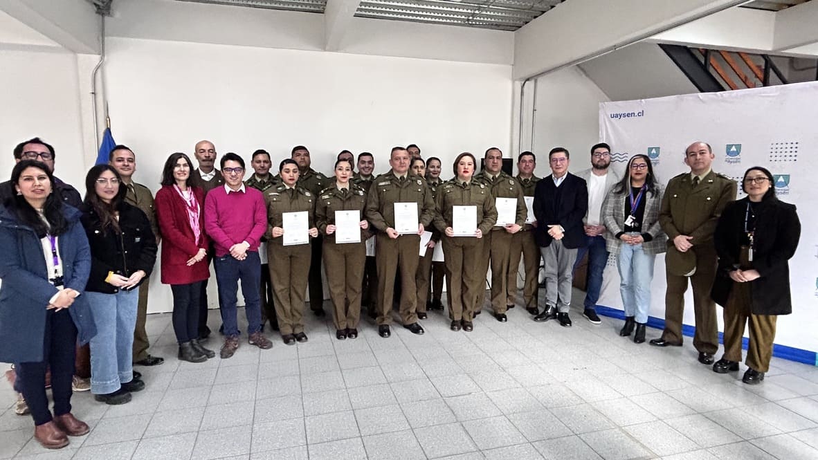 Este martes 24 de septiembre se llevó a cabo la ceremonia de certificación de 14 carabineros y carabineras de la ciudad de Coyhaique, que aprobaron el curso “Estrategias y Habilidades para la Primera Atención en Personas Víctimas de Violencia de Género”, una inédita capacitación piloto a nivel país impulsada por el Servicio Nacional de la Mujer y la Equidad de Género (SernamEG) y la Universidad de Aysén.