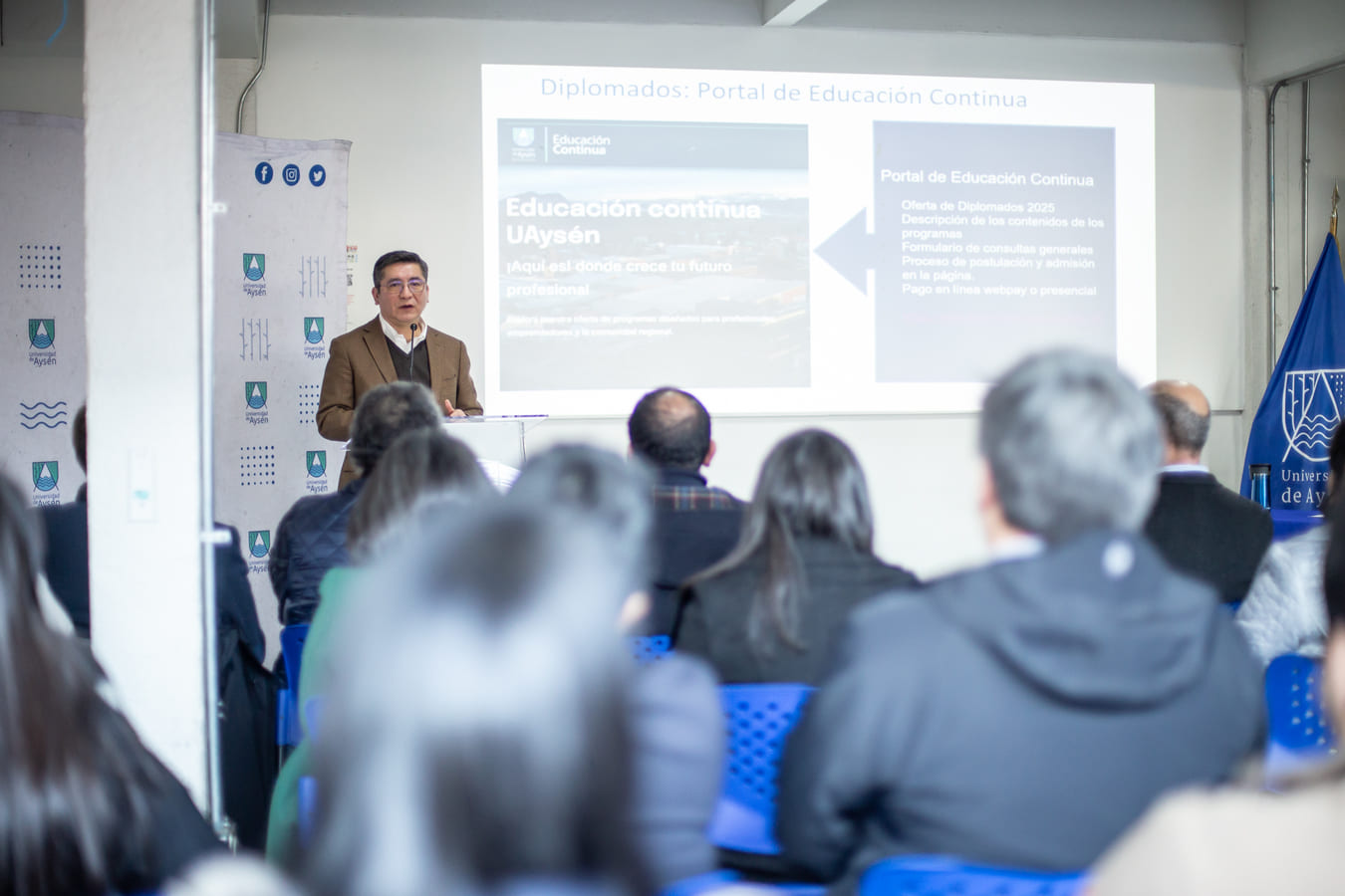 En la oportunidad, el Director General Académico, Marco Vega López, subrayó la relevancia de este nuevo paso institucional. “Hoy estamos en una actividad muy importante para la universidad. Estamos presentando nuestra área de Educación Continua y, concretamente, siete programas de diplomados que pertenecen a los tres departamentos académicos. Son programas muy pertinentes, elaborados con criterios de calidad y contenidos actualizados. Invitamos a todas y todos a revisar la página educacioncontinua.uaysen.cl, donde encontrarán el detalle de los programas, condiciones y proceso de inscripción”.