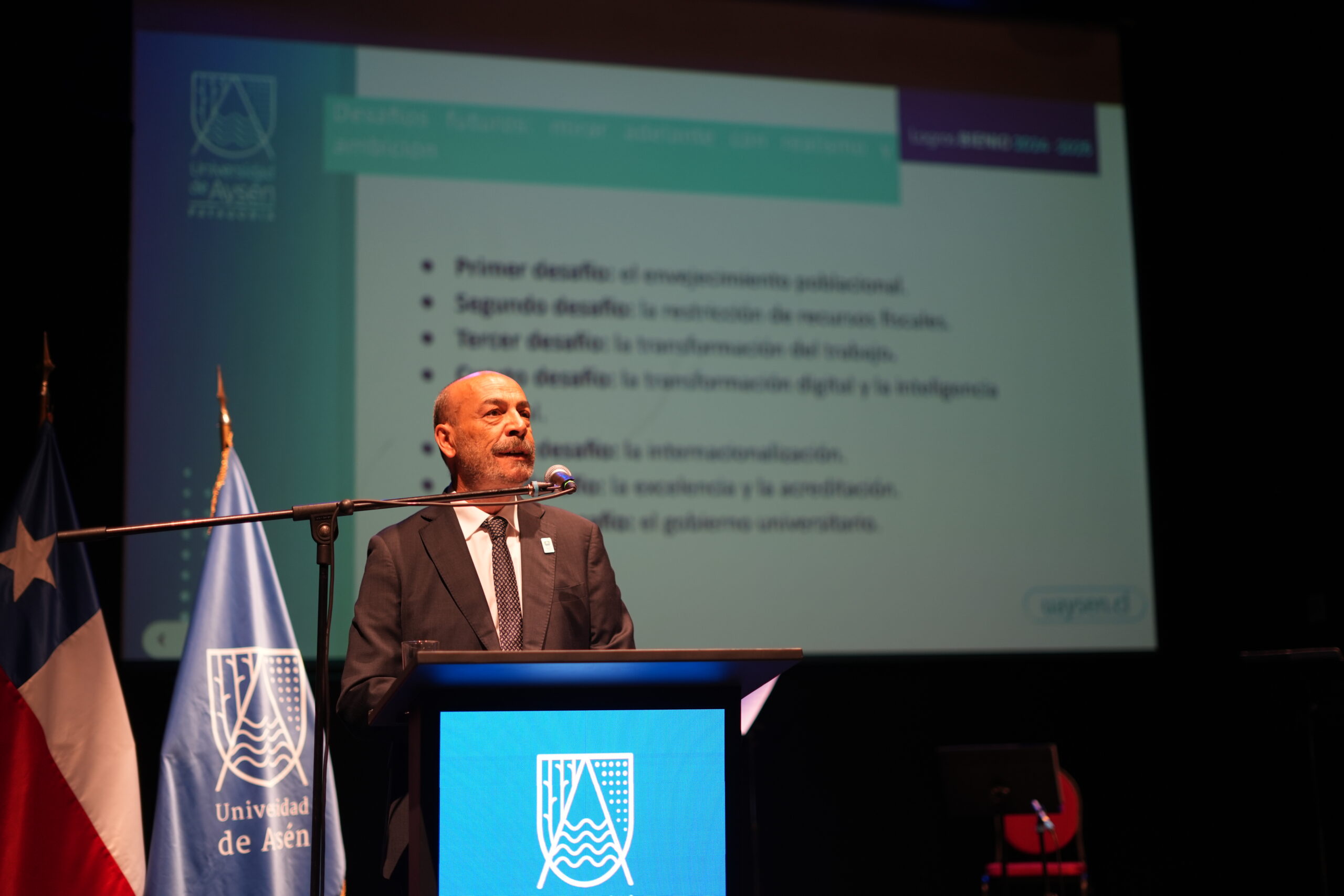 La Universidad de Aysén presentó el pasado viernes 9 de enero su Cuenta Pública 2024–2025 en el Centro Cultural de Coyhaique, instancia encabezada por su Administrador Provisional, Juan Pablo Prieto Cox, y que contó con la presencia de autoridades regionales y nacionales, donde se informaron los principales resultados del proceso desarrollado entre enero de 2024 y enero de 2026, período marcado por la recuperación, el fortalecimiento de la gestión y la proyección del proyecto universitario estatal en la Región de Aysén.