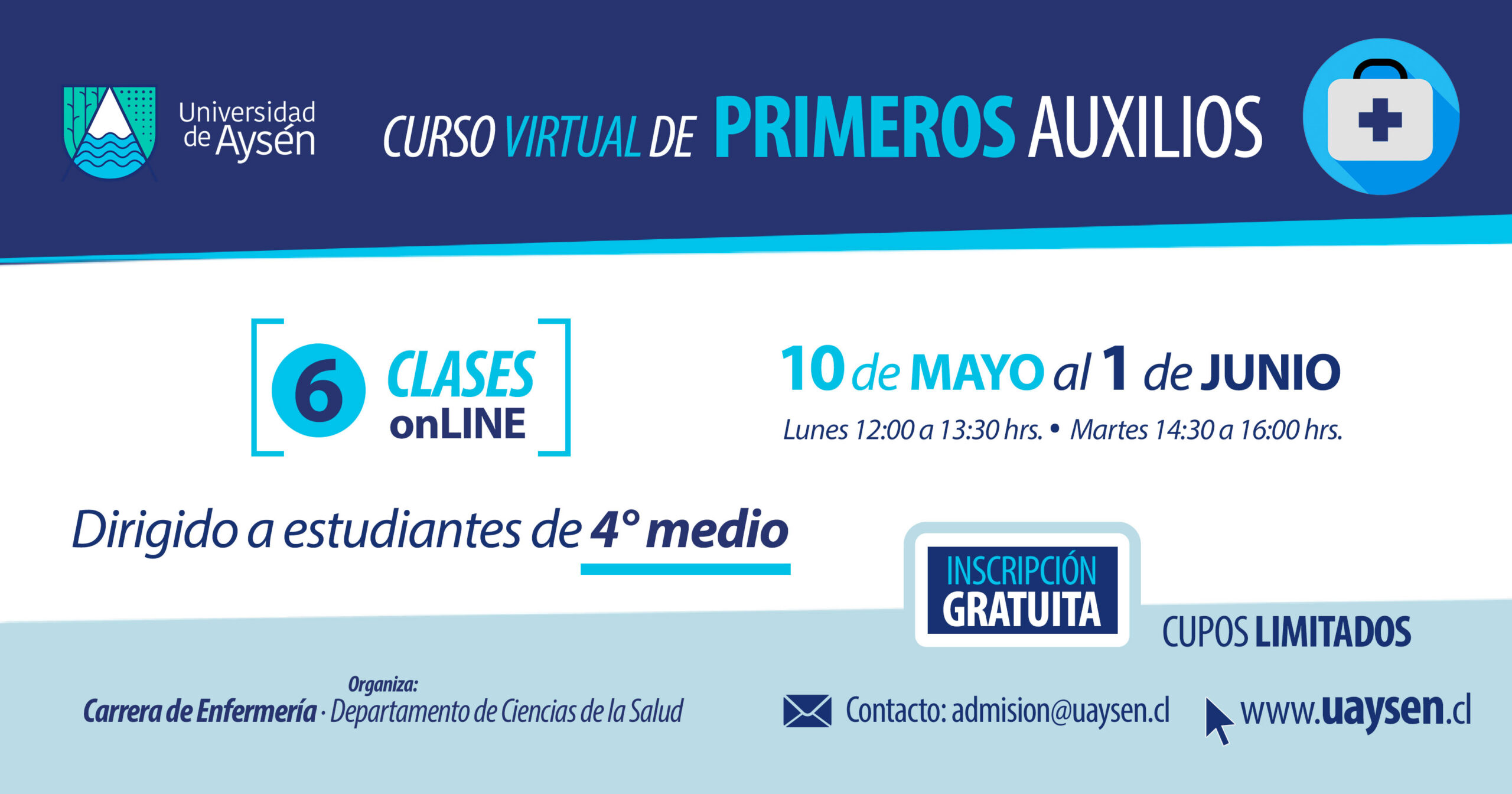 Nuestra carrera de Enfermería UAysén invita a todos/as los estudiantes de 4to Medio a inscribirse en el «Curso Virtual de Primeros Auxilios 2021».