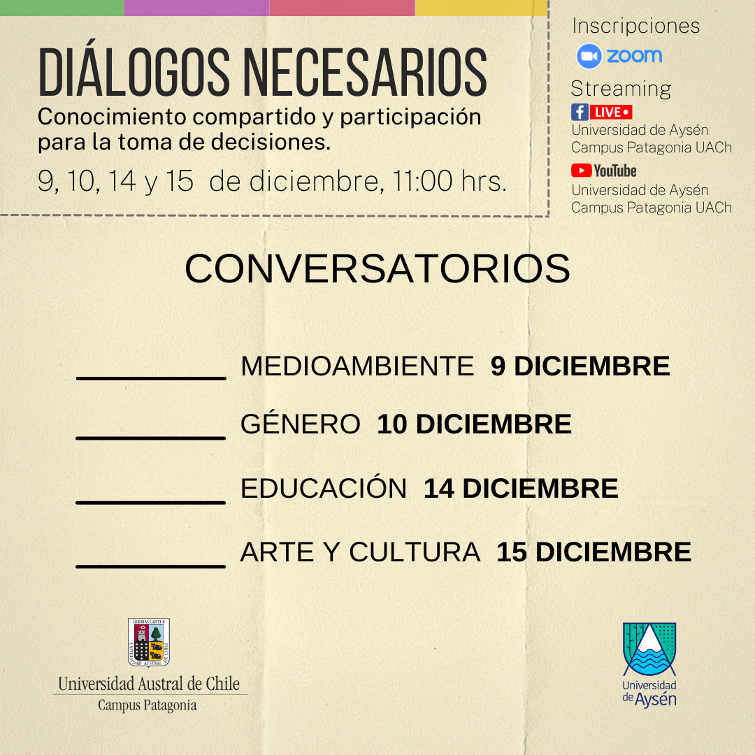 Diálogos Necesarios es un ciclo de cuatro conversatorios que busca generar un espacio de reflexión, discusión y diálogo para la toma de decisiones informadas en las comunidades/ciudadanía. A través de cuatro jornadas temáticas, se busca abordar temas transversales y relevantes para la ciudadanía frente a este nuevo proceso de elecciones, poniendo en valor la importancia de conocimiento compartido, el debate y el rol de publico de las universidades, en generar las condiciones para pensar y reflexionar sobre las necesidades y proyecciones de desarrollo de las comunidades y su entorno.