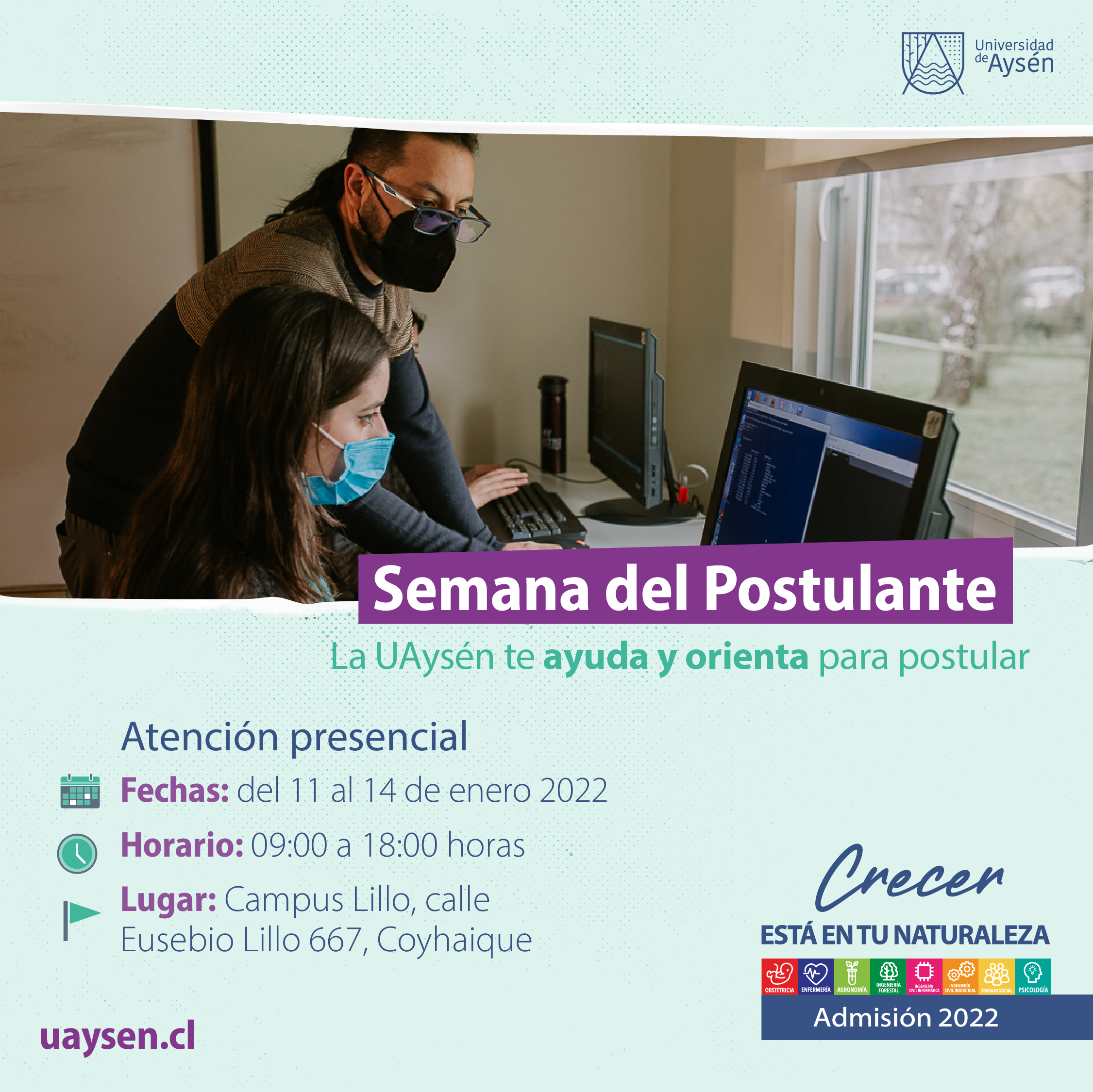 Se acerca la fecha en la que deberás realizar tu postulación a la educación superior, por ello la UAysén nuevamente realizará la Semana del Postulante instancia en la que nuestro equipo de admisión te ayuda y orienta para realizar este proceso, independiente de la universidad a la que quieras ingresar.