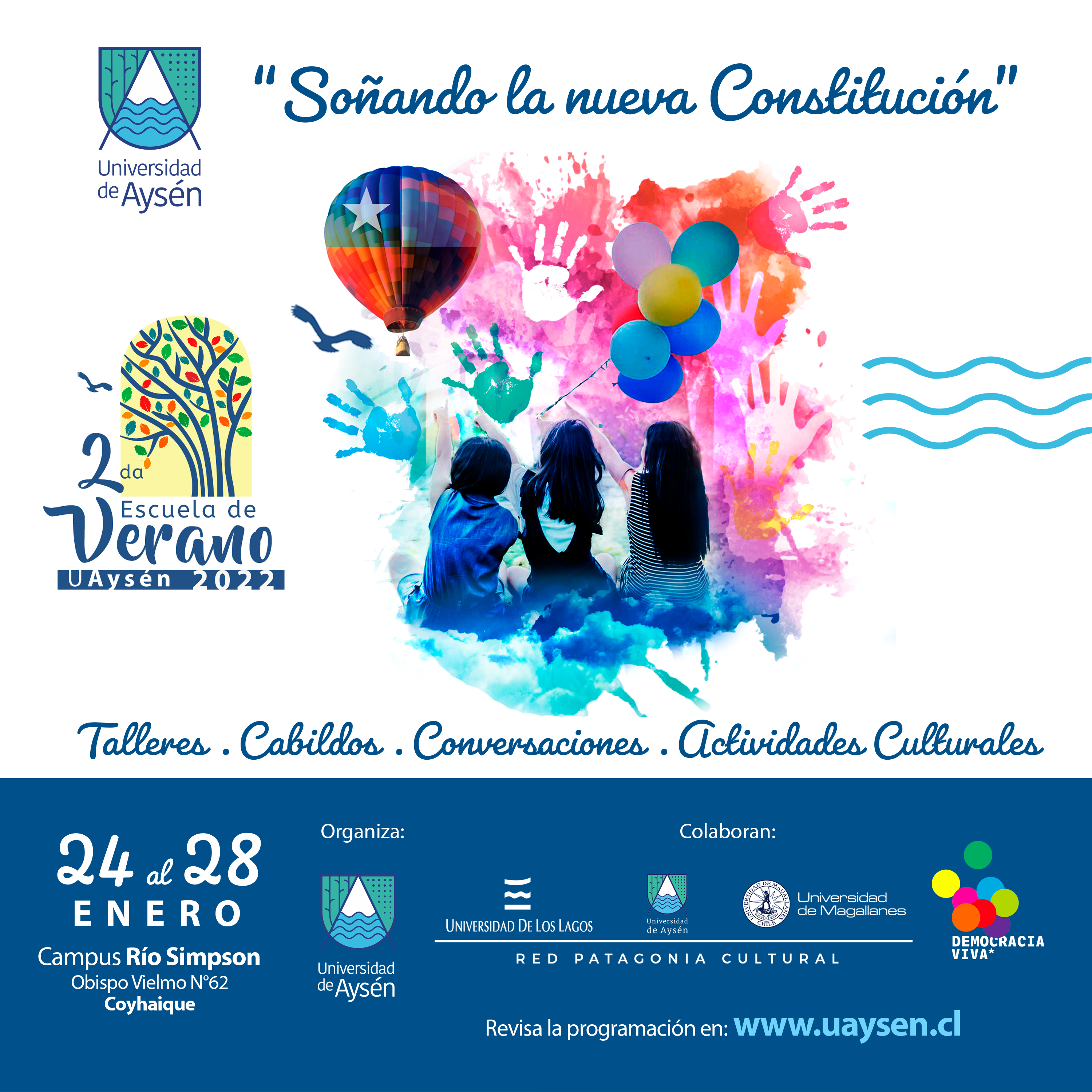 La Universidad de Aysén invita a toda la comunidad a participar de la 2ª Escuela de Verano, que este año estará centrada en el proceso constituyente, y a través de la que se realizarán talleres, cabildos, conversatorios y actividades culturales. La actividad cuenta con la colaboración de la fundación Democracia Viva.