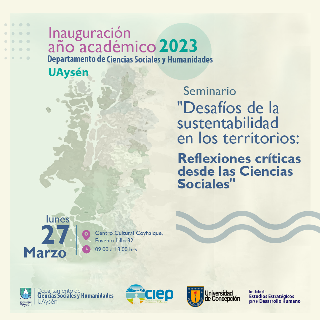 En el marco de la inauguración del año académico del departamento de Ciencias Sociales de la Universidad de Aysén, se realizará el seminario Desafíos de la sustentabilidad en los territorios: reflexiones críticas desde las ciencias sociales