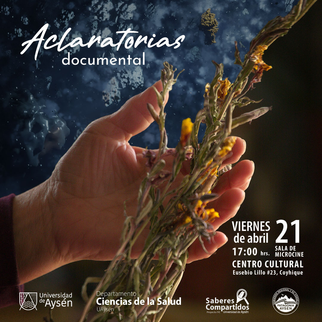 [Divulgación Científica ] “Aclaratorias” es el nombre del documental elaborado en el marco del proyecto FIC “ Aysén: fuente de nuevos medicamentos para el cáncer” ejecutado por el académico e investigador #UAysén Dr. Fabián Jaña Prado durante los años 2018 y 2021 a través del que se buscaba implementar una plataforma tecnológica productiva de carácter sostenible que permitiera impulsar el descubrimiento y desarrollo de nuevos medicamentos de origen natural en la Región de Aysén. El documental, da cuenta de la participación del grupo de recolectoras de hierbas del sector rural de Puerto Ibáñez llamadas “Las Collalas” y su contribución con los investigadores del laboratorio Fisiología celular y metabolismo de la #UAysén, entregando sus hierbas y conocimientos para el análisis y búsqueda de posibles compuestos que puedan combatir a la formación de tumores. En un viaje a través de territorios vastos y microscópicos, el documental da cuenta de una observación honesta y un relato colectivo que entreteje imaginarios, que va destejiendo una red de ideas y emociones, buscando puntos de cruce de un sentimiento en común; tomar contacto con un mundo que está más allá de lo que uno puede abarcar con la mirada y la imaginación.