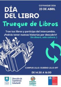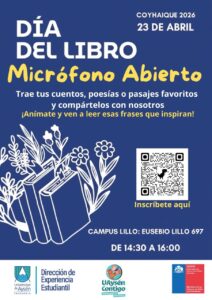 En el marco de la conmemoración del Día del Libro 2026, la Universidad de Aysén invita a la comunidad universitaria y regional a participar en una jornada abierta de actividades culturales en Campus Lillo (Eusebio Lillo 697), el miércoles 23 de abril entre las 14:30 y 16:00 horas. La programación contempla espacios participativos, creativos y de encuentro en torno a la lectura, la escritura y la cultura visual, incluyendo talleres, micrófono abierto, trueque de libros, visita del bibliomóvil regional y otras iniciativas pensadas para disfrutar en comunidad.