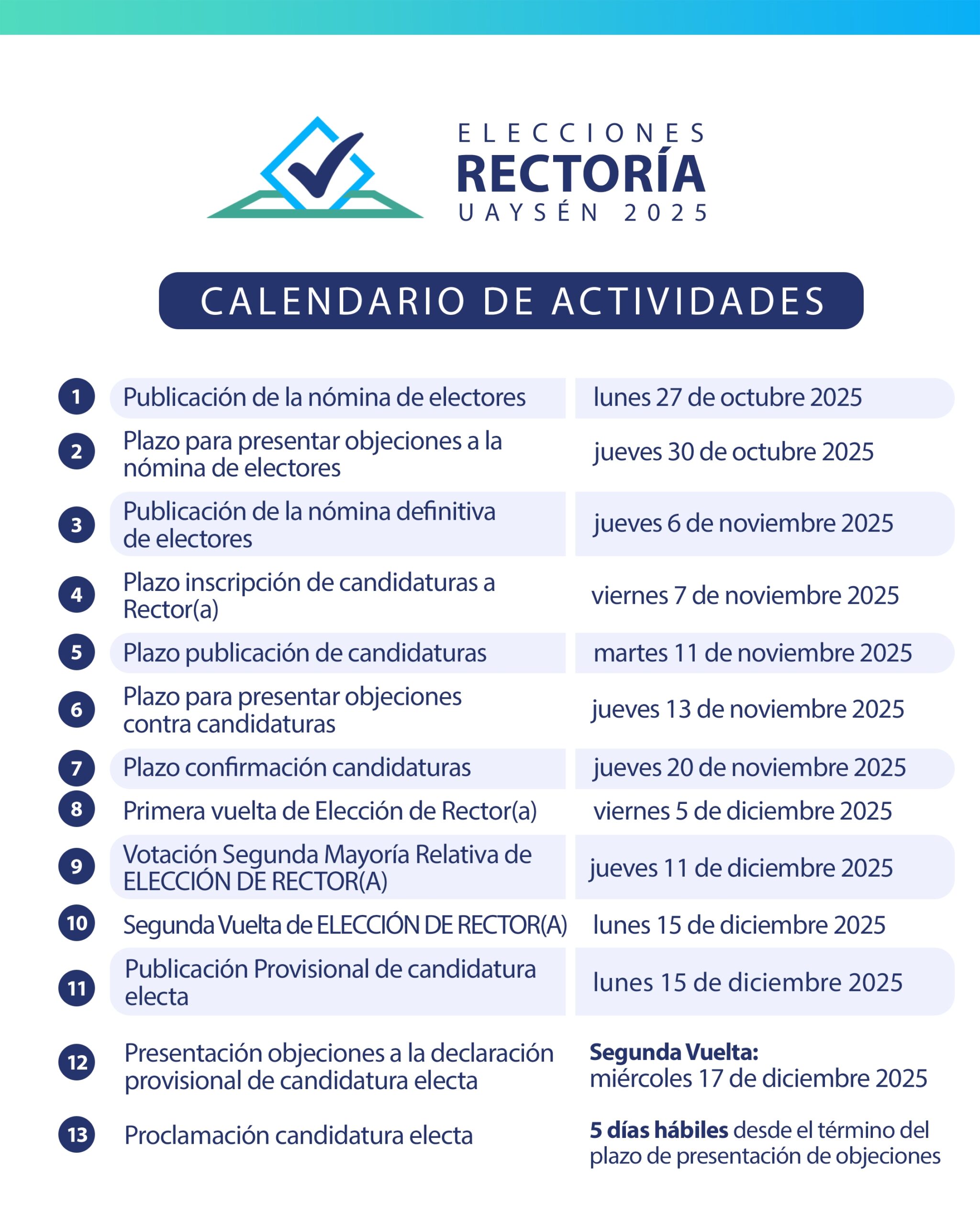 La Universidad de Aysén informa a su comunidad universitaria que, mediante Resolución Universitaria Exenta N°396, de fecha 1 de octubre de 2025, se ha aprobado la convocatoria a elección de Rector(a) de nuestra institución.